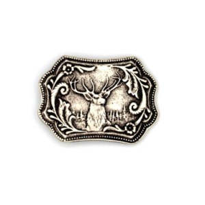 Majestic stag head with the treeline in the background and surrounded by intricate foliage and flower motifs make this buckle a great choice for sportsmen or nature-lovers.