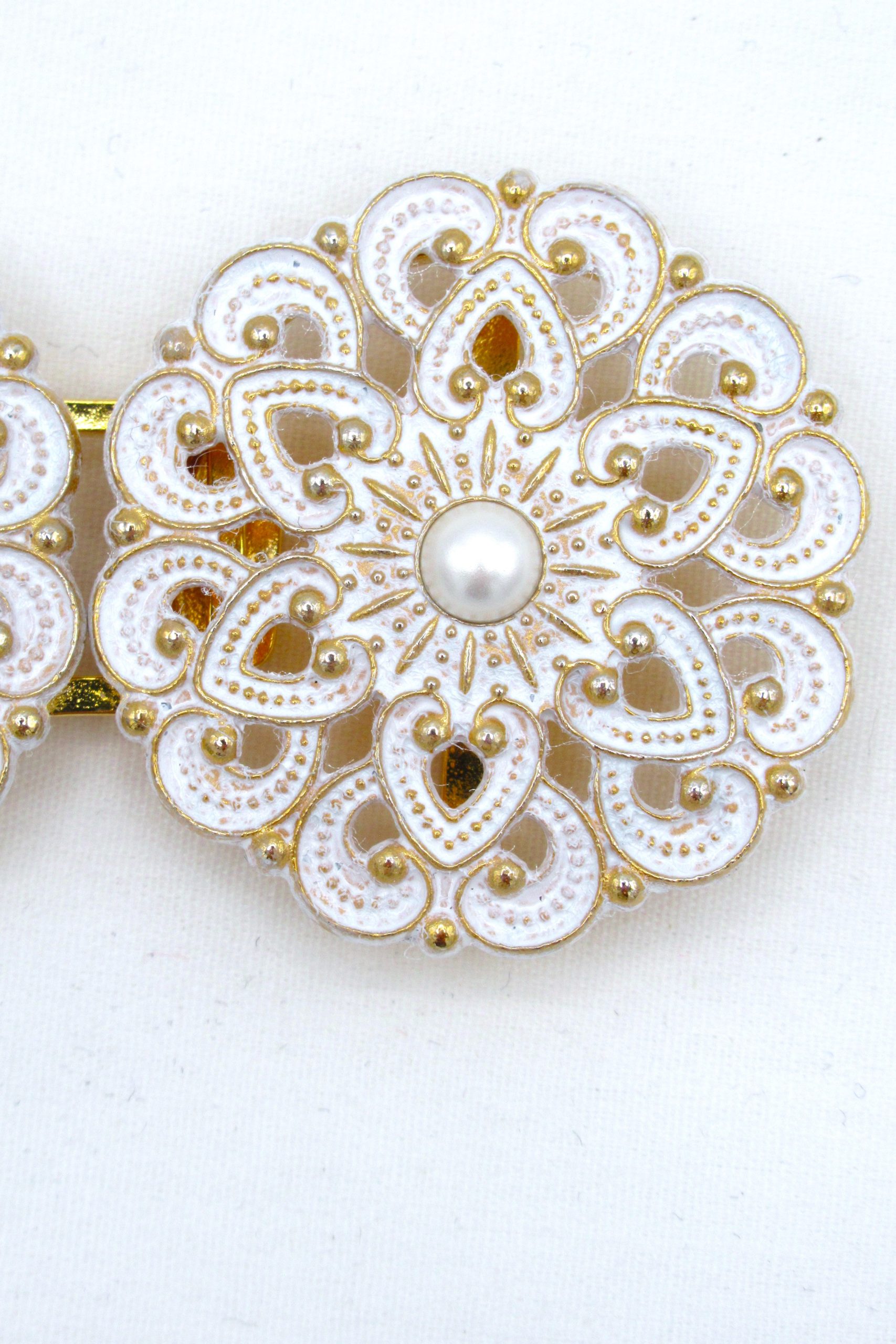Perfect for a summer or bridal dirndl, or as a ribbon belt clasp to add a couture touch to your lace wedding gown.