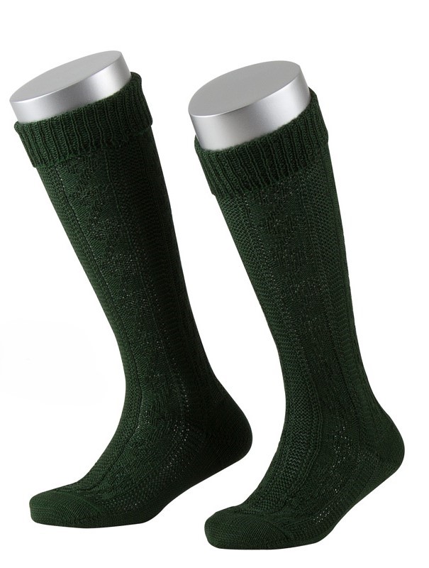 Traditional knee-socks in a deep green cable knit.ย  Blend of Wool, polyester and acrylic.
