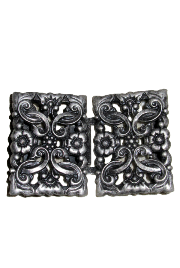 Crisply cast rectangular base metal clip in antique pewter finish adds a modern touch to your sewing project, or to update an existing apron. rMeasures 2 1/4 inches side to side when fastened, and 1 1/4 inches high.