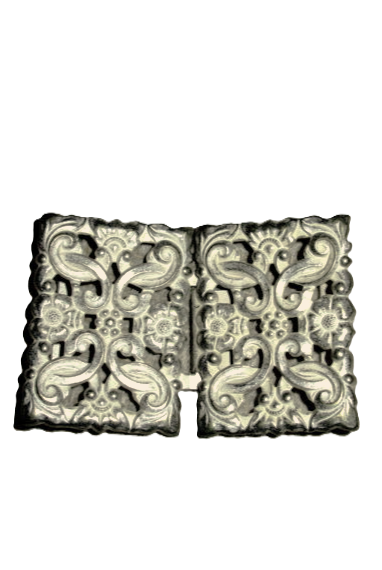 Crisply cast rectangular base metal clip in a pretty whitewash gold finish adds a modern touch to your sewing project, or to update an existing apron. Perfect for a wedding dirndl! rMeasures 2 1/4 inches side to side when fastened, and 1 1/4 inches high.