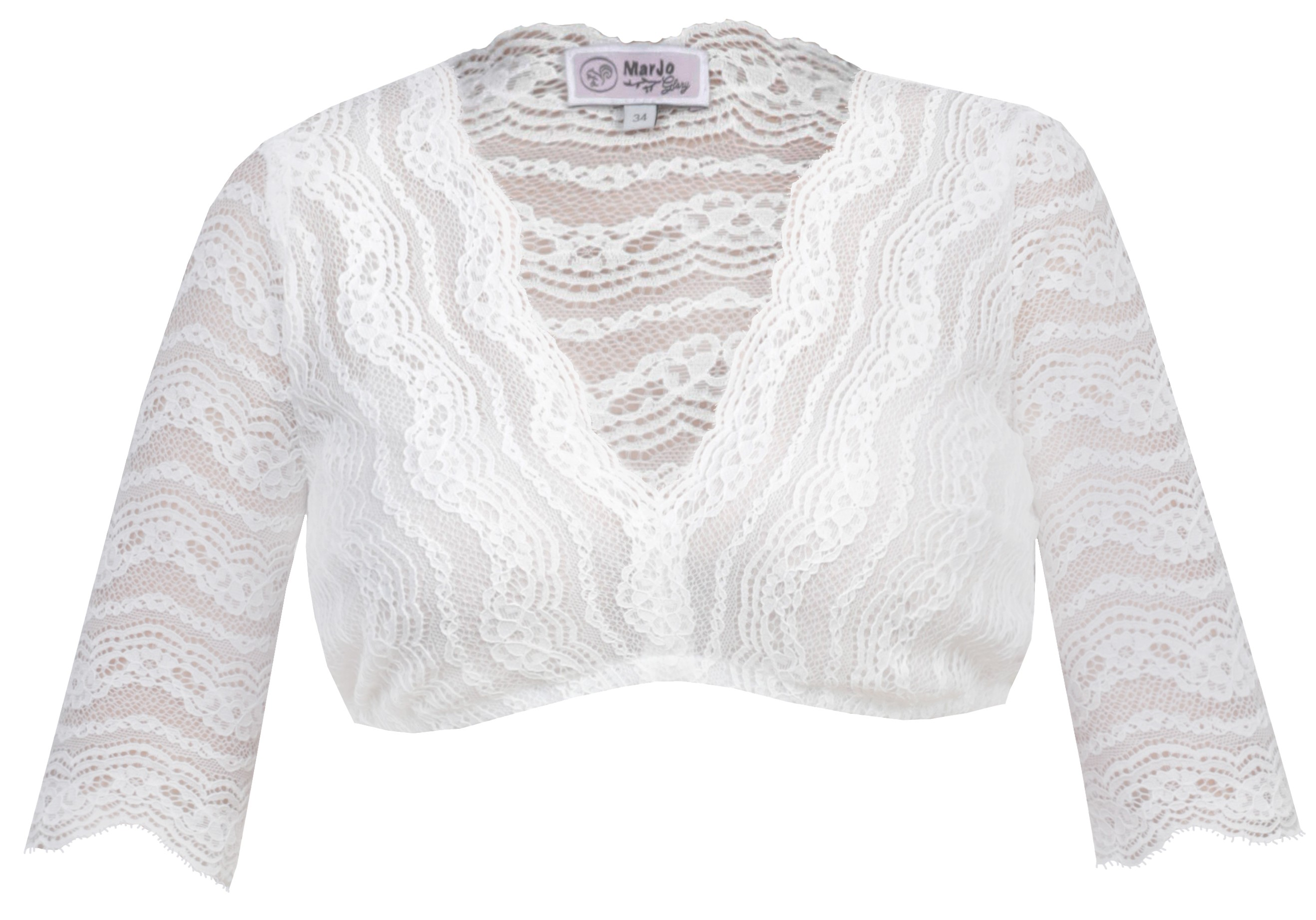 Lovely V-neck dirndl blouse with elbow-length sleeve in stretch lace.ย Unlined.