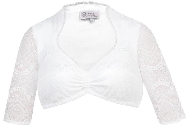 Pretty soft white lace blouse with shaped neckline, features fully-lined body and sheer, elbow-length sleeves to show off the patterns in the lace.ย Drawstring at centre bustline to allow you to adjust for fit and modesty.