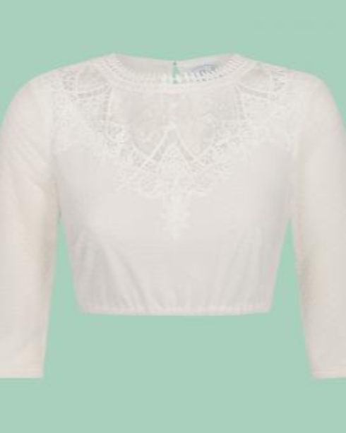 Dirndl Blouse High Neckline with Lace Inset White