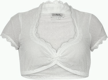 Sweet sheer lace netting blouse with subtle dot pattern has short sleeves and adjustable sweetheart neckline, trimmed with scalloped lace. Soft off-white colour works well with any dress.