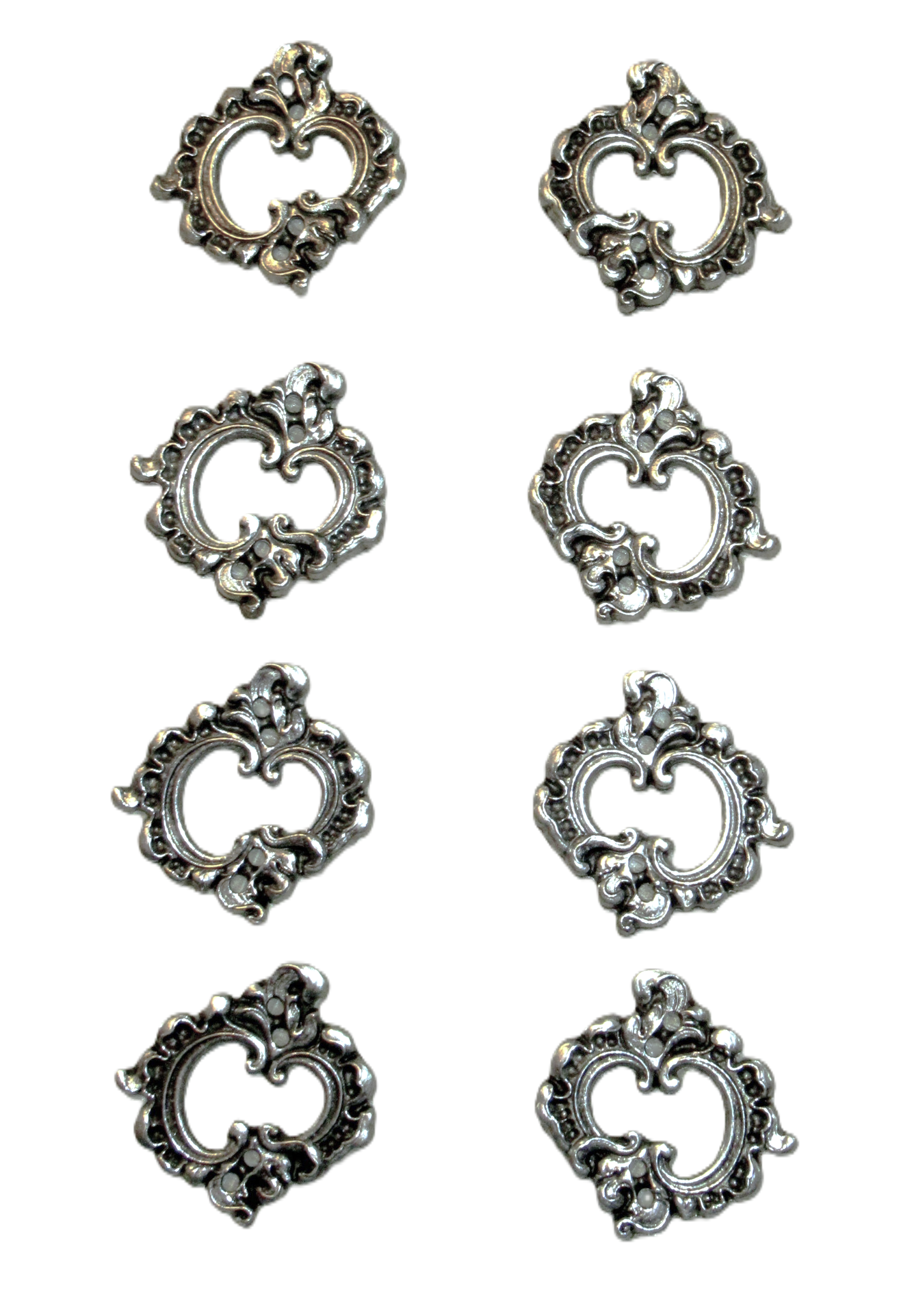 Beautifully cast in antique silver metal, these unique hooks will bring elegance to your sewing project or as replacements to dress up a dirndl already in your collection.ย Perfect for historical costumes or bridal fashions.ย ย Each measures 1 1/4 inch/30 mm in diameter.