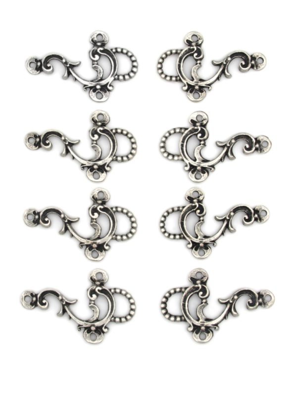 Unique bodice hooks in the shape of a delicate flowing vine.ย The closed loop has raised “beads” to created added interest while holding the lacing ribbon securely in place.ย ย Measures 1 3/4 inches/44mm wideย ย xย 1 3/16 inches /29mm highย overall.