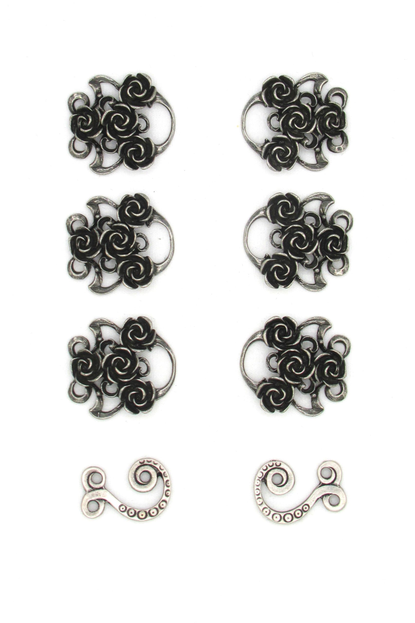 Dirndl Bodice Hooks Rose Cluster Black Steel Finish Set of 8