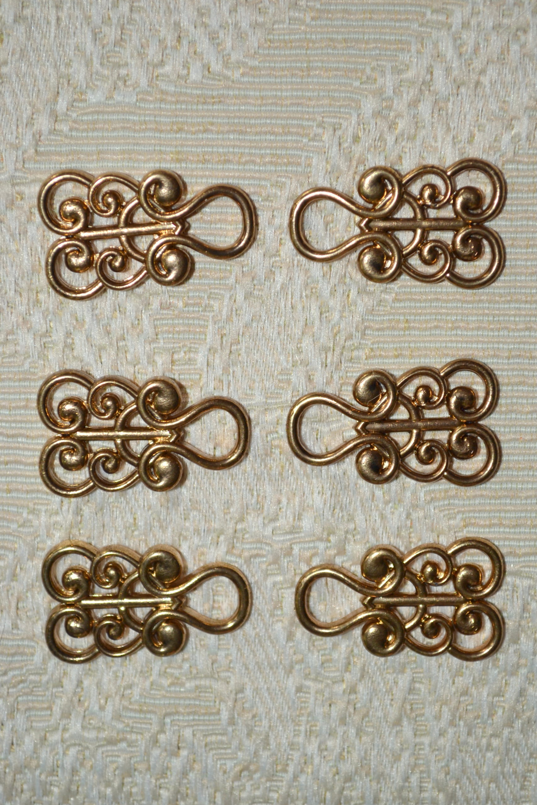 Economically priced hooks are a pretty addition to your sewing project, or a great way to change the look of an older dress. These hooks are cast as one piece from tin…so are very lightweight, but quite sturdy. Closed loop design holds your ribbon or chain securely. Lovely interlocked scroll design.