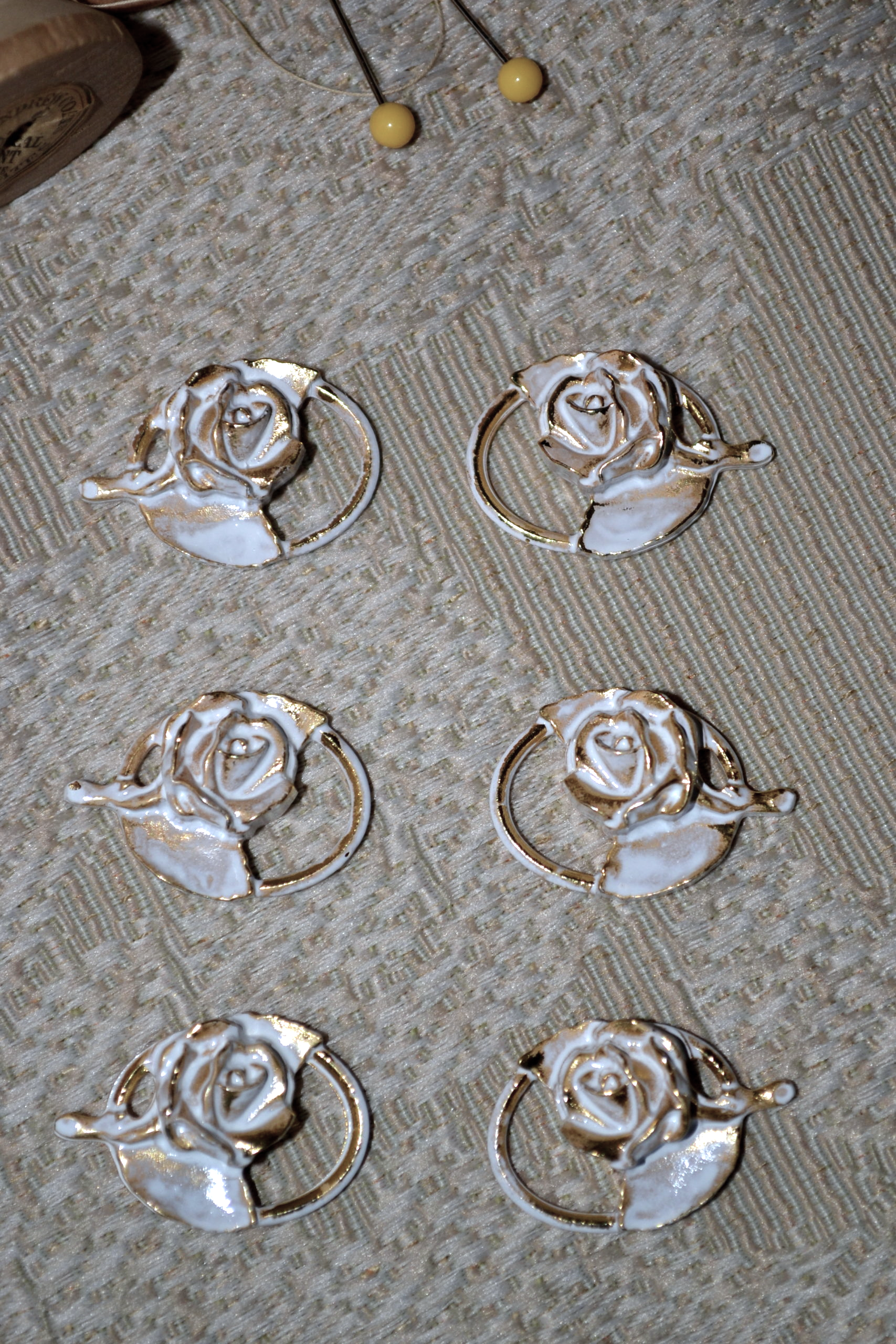 Dirndl Bodice Hooks Dimensional Rose Whitewashed Gold Set of Six