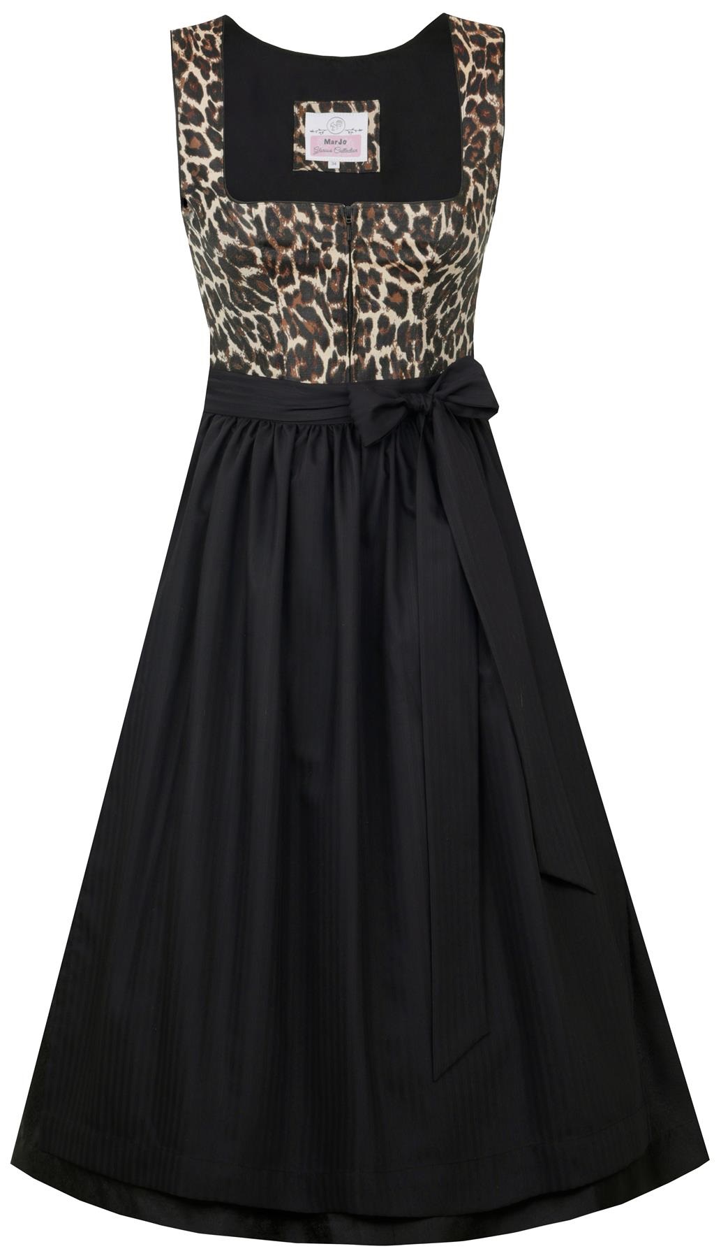 Jungle prints are beginning to trend again, and this dress embraces that in a big way!ย The bodice is a larger-scale allover leopard pattern brocade in warm beige/gold, brown and black.ย The skirt portion is black brocade with a small tonal allover pattern, and the apron is a fine brocade with vertical slightly textured stripes.