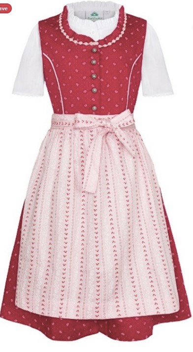 Girls’ Dirndl with Blouse Deep Red with Pink Apron