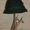 Traditional Bavarian children’s hat in dark green, with cording trim and feather accent.