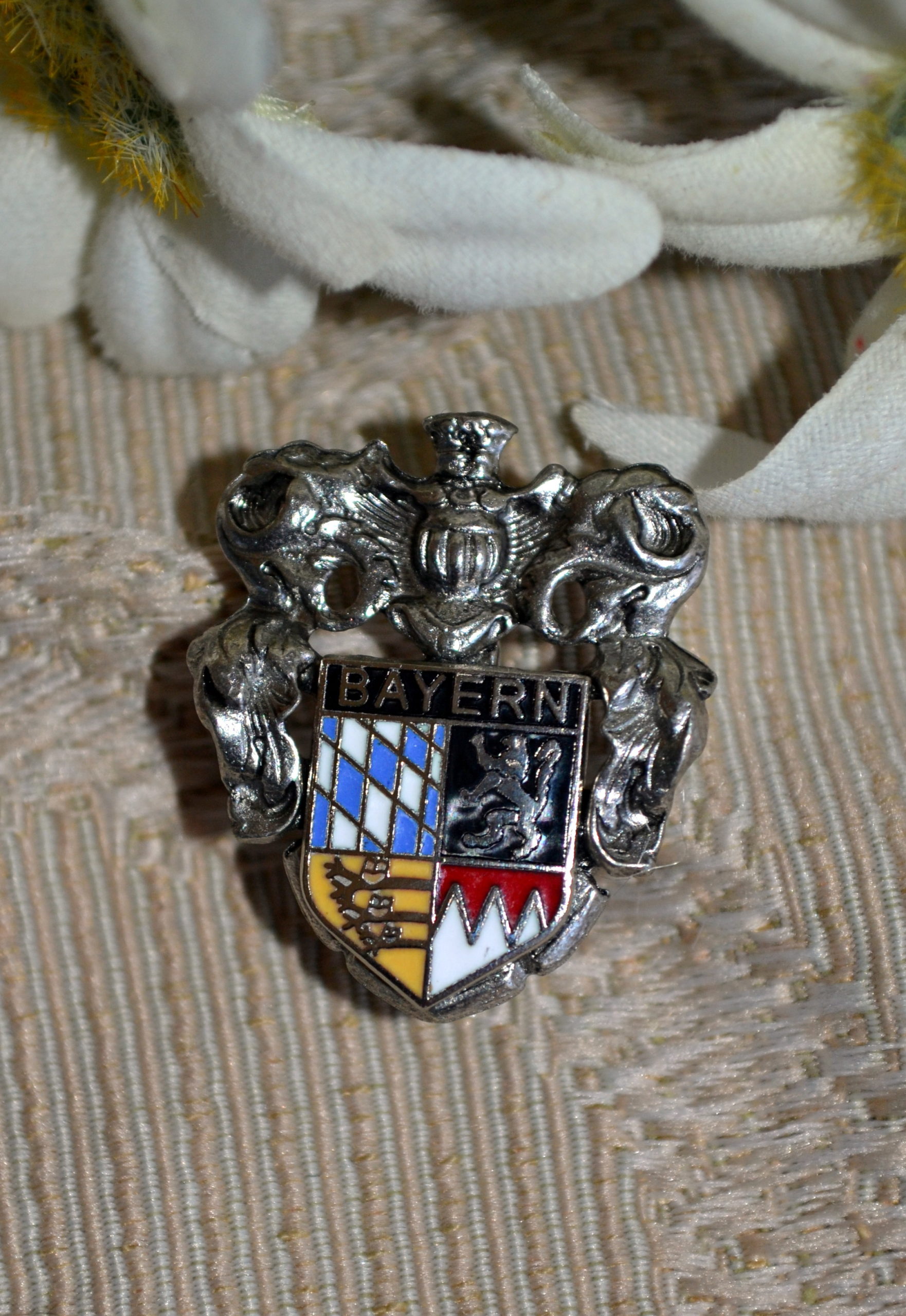 Beautifully cast and detailed Bavarian crest in full colour. About 1″/2.5 cm high x 3/4″/18 mm wide. Great on your hat or lapel.