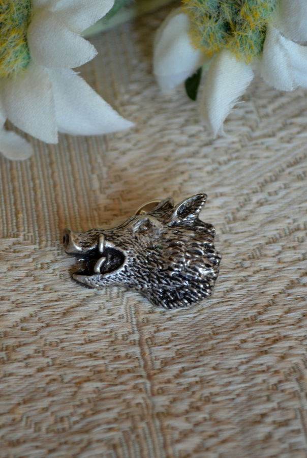 Great hat or lapel pin depicting a wild boar head. Great casting in pewter-finish metal, has lots of crisp detail. Clutch back pin (as in a tie tack) will hold the pin securely to your hat or lapel.