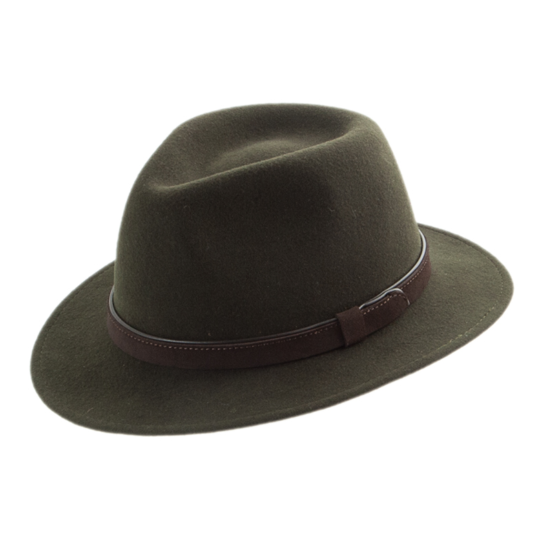 ***Due to our stock having been purchased over several seasons, the colour and type of band may vary:ย ย Current (2023) stock has a brown suede band on the olive and brown hats; a black suede band on the black and charcoal grey hats.ย See the secondary photos for details.ย ย A few remaining hats from previous seasons may have either a black or dark oxblood brown leather band, as shown in the principal photo.