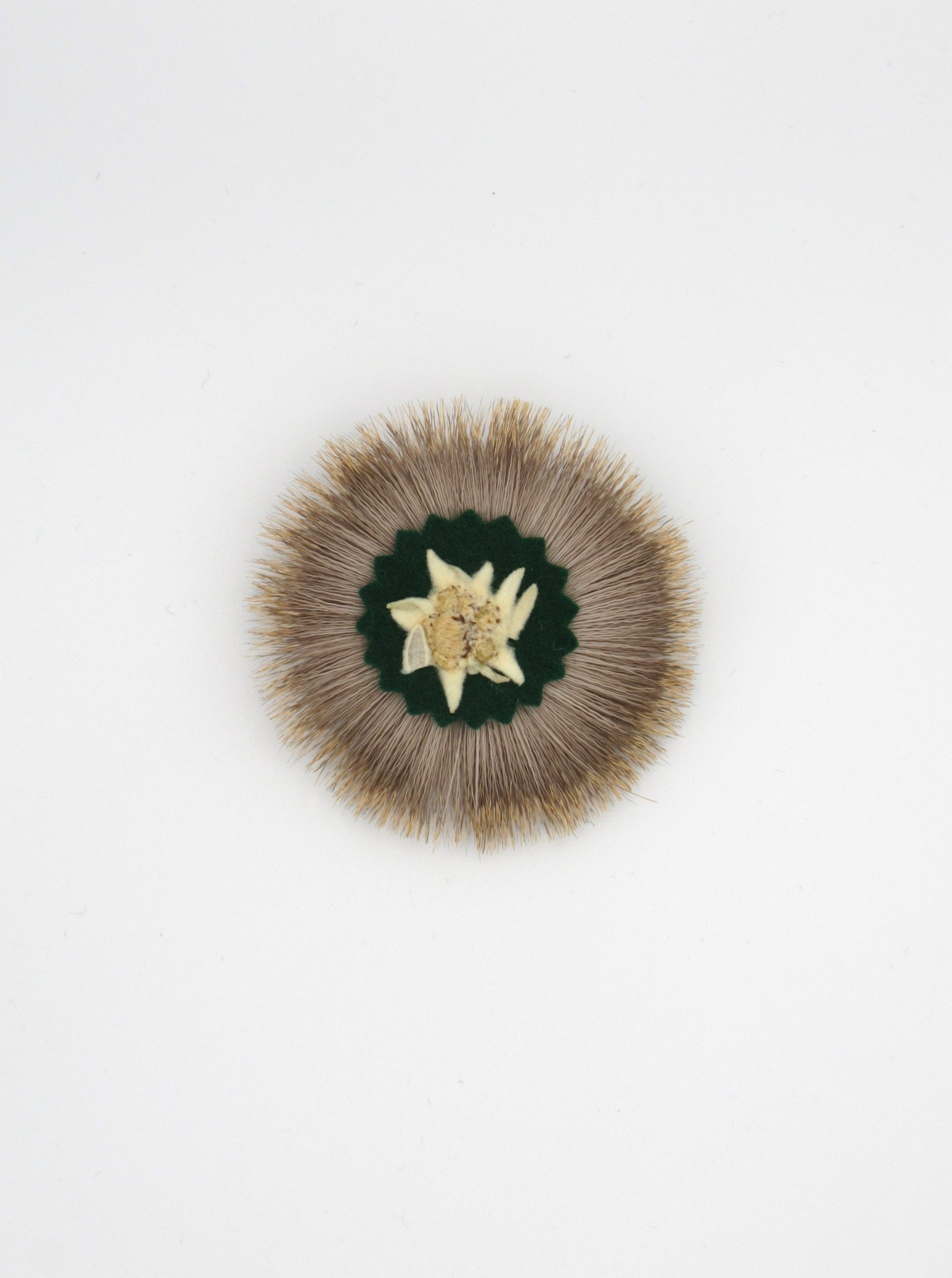 Great addition to your oktoberfest hat, authentic deer hair radl with dried edelweiss flower at centre.
