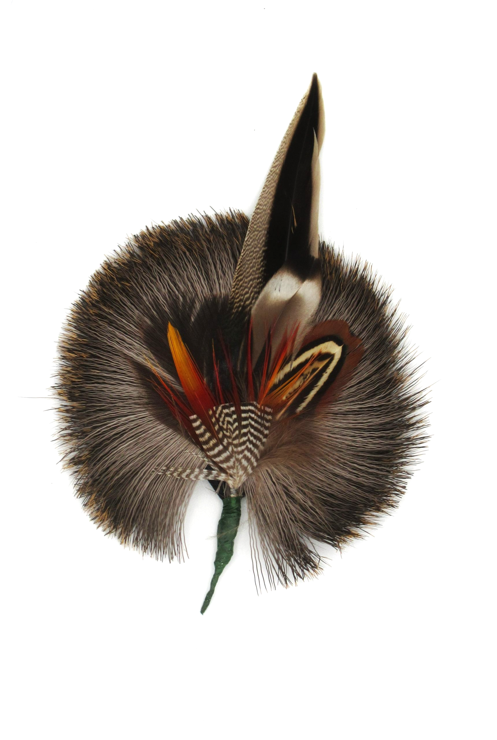 Great accessory for your favourite hat, authentic deer hair with assorted pheasant feathers.ย ย Securing bound together, and will fit under the band or cording of the hat, where it can be secured from the inside with a safety pin.ย Small holders with attached pin available under separate listing.