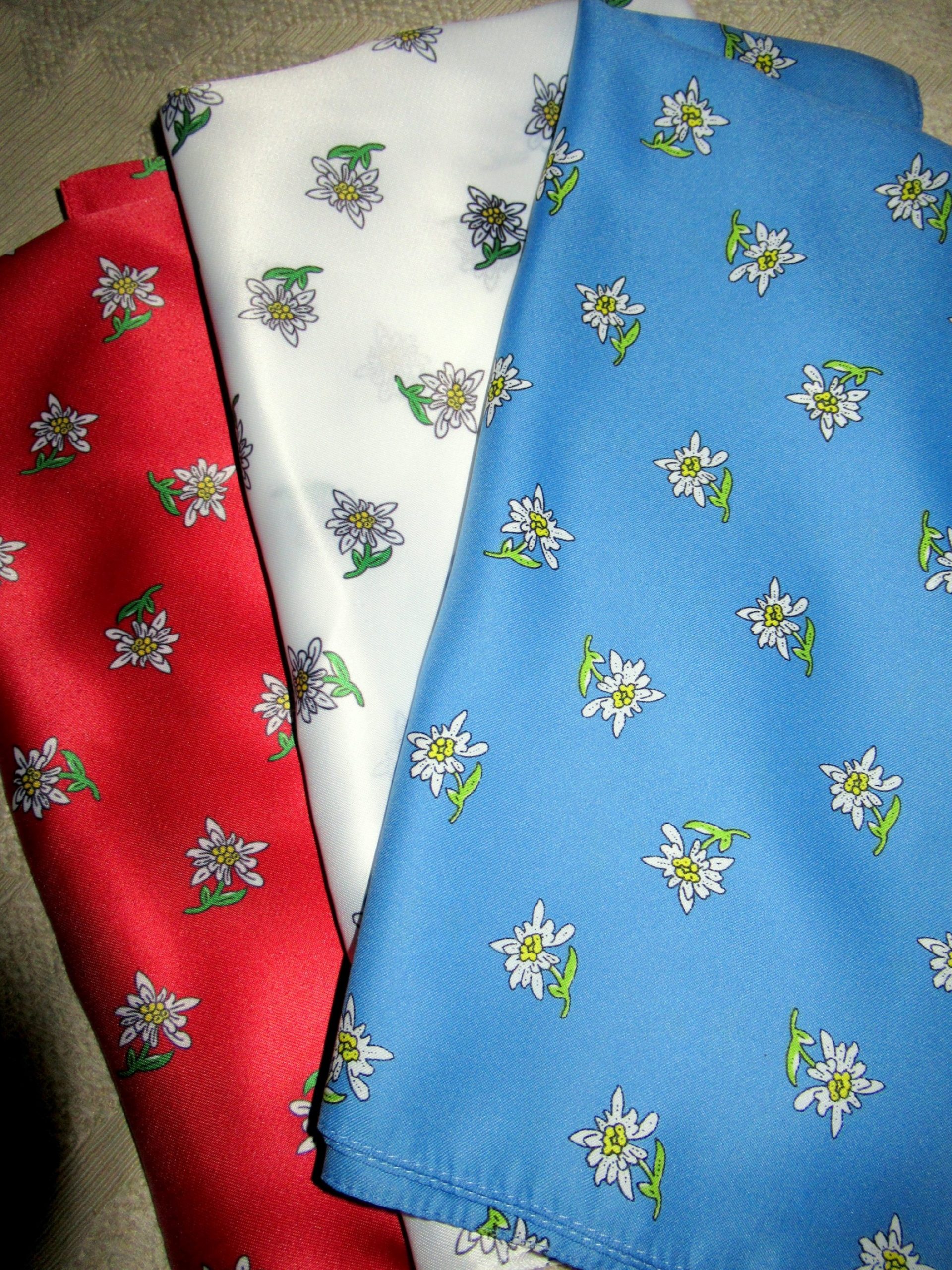 Made in Italy – Great quality for a great price.rrSweet little scarf measures 22 1/2 inches square; the perfect size to provide a little splash of colour and fun worn around the neck, or tied to the strap of your handbag. 100% silkย – just give it a swish in cool water with mild soap, and hang to drip dry!