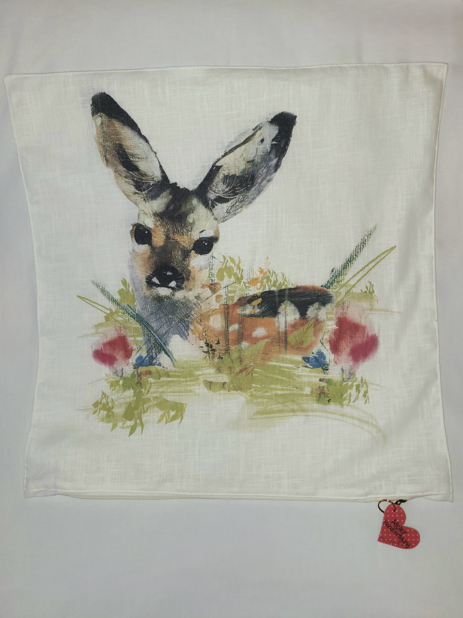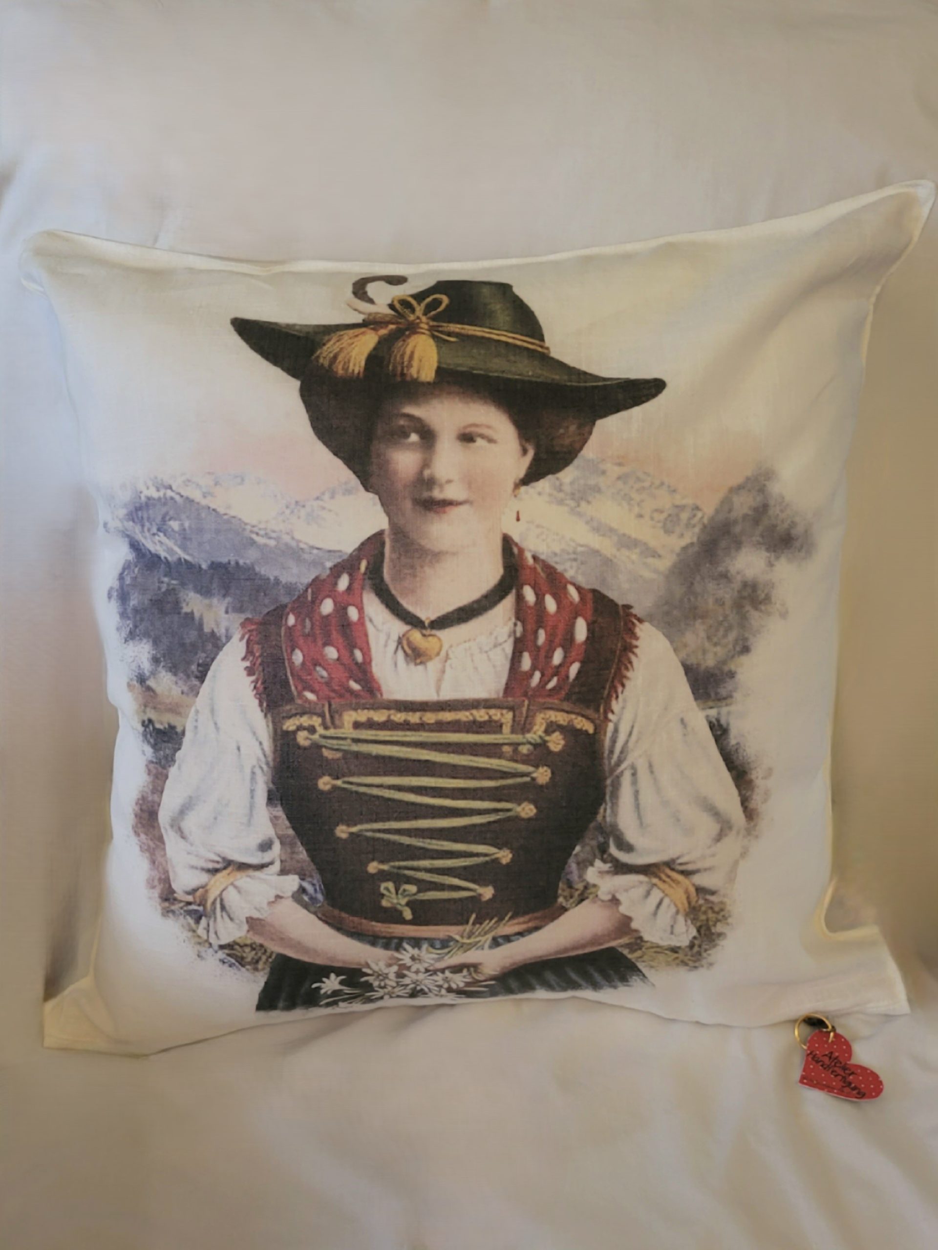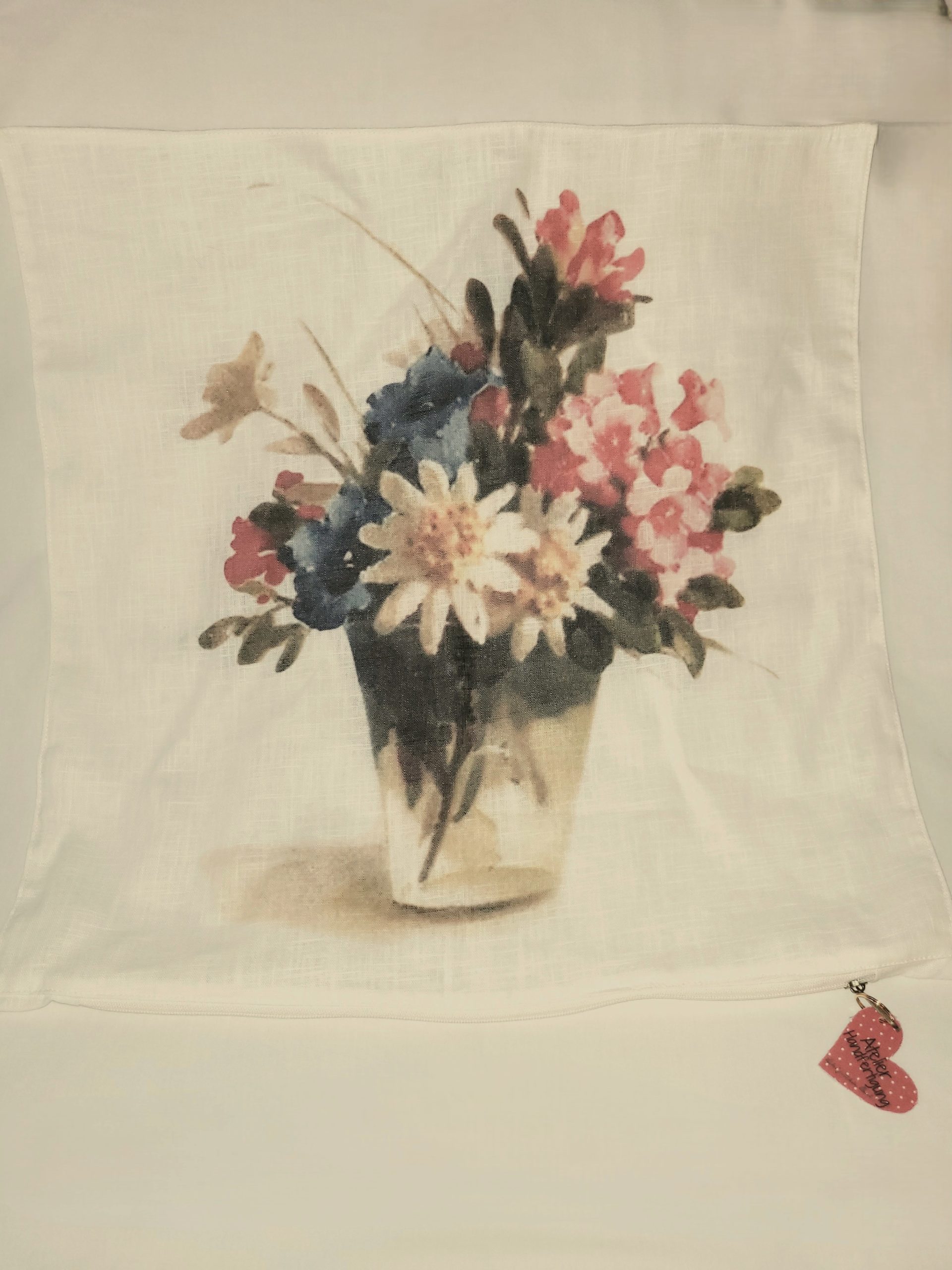 More fab prints from vintage cards, this time on 20 inch/51 cm square linen pillow covers.ย  Each natural colour pillow is printed with the same design on both sides, to increase use between washings.ย  Integrated nylon zipper across the bottom with decorative heart tag.ย  ย A great accessory for your sofa or bed, porch or cottage!