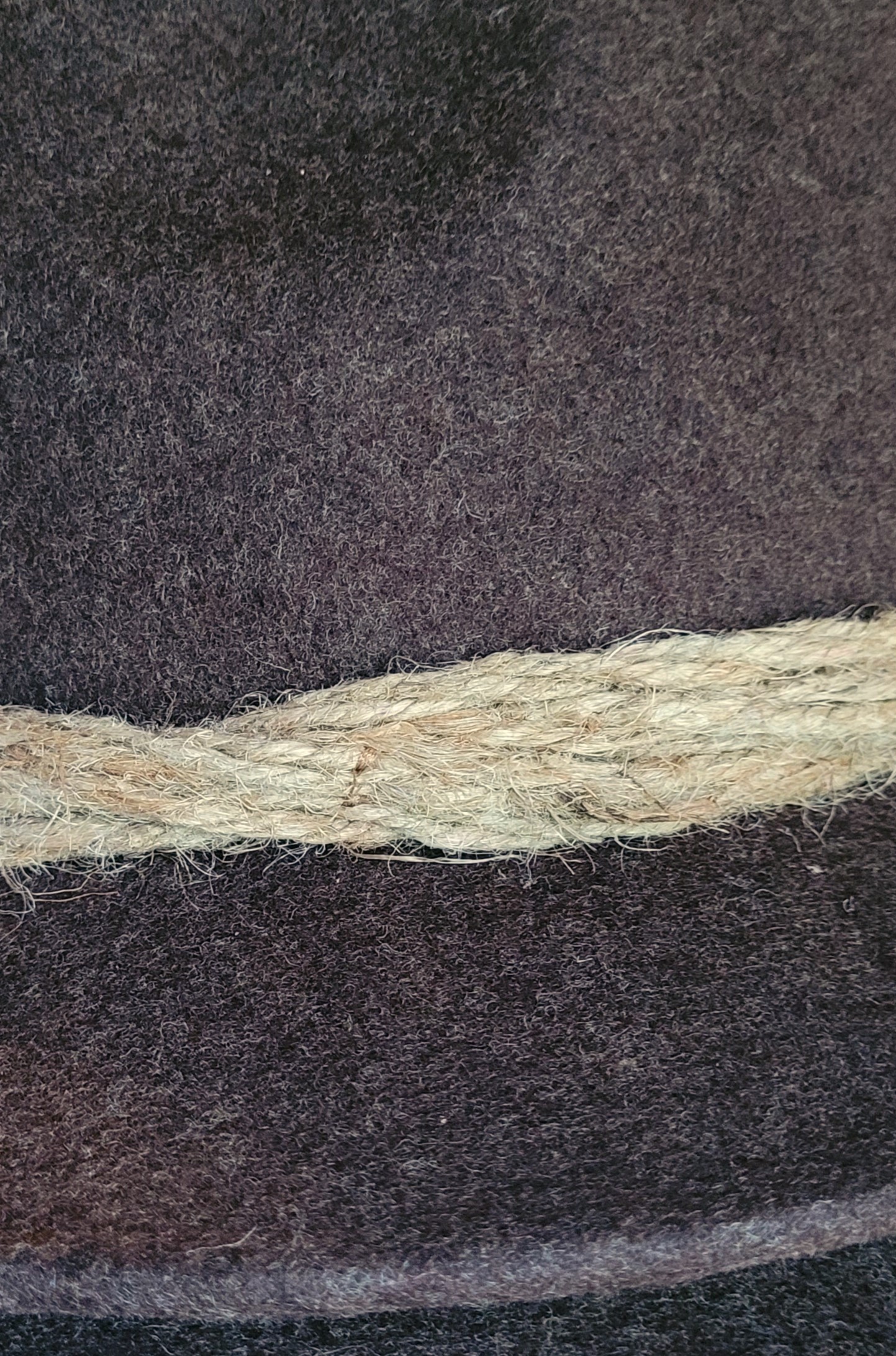 Medium chocolate brown hat features twisted natural hemp cord banding for a casual look. Brim is just shy of 2 1/2 inches wide – flattering to most face shapes.