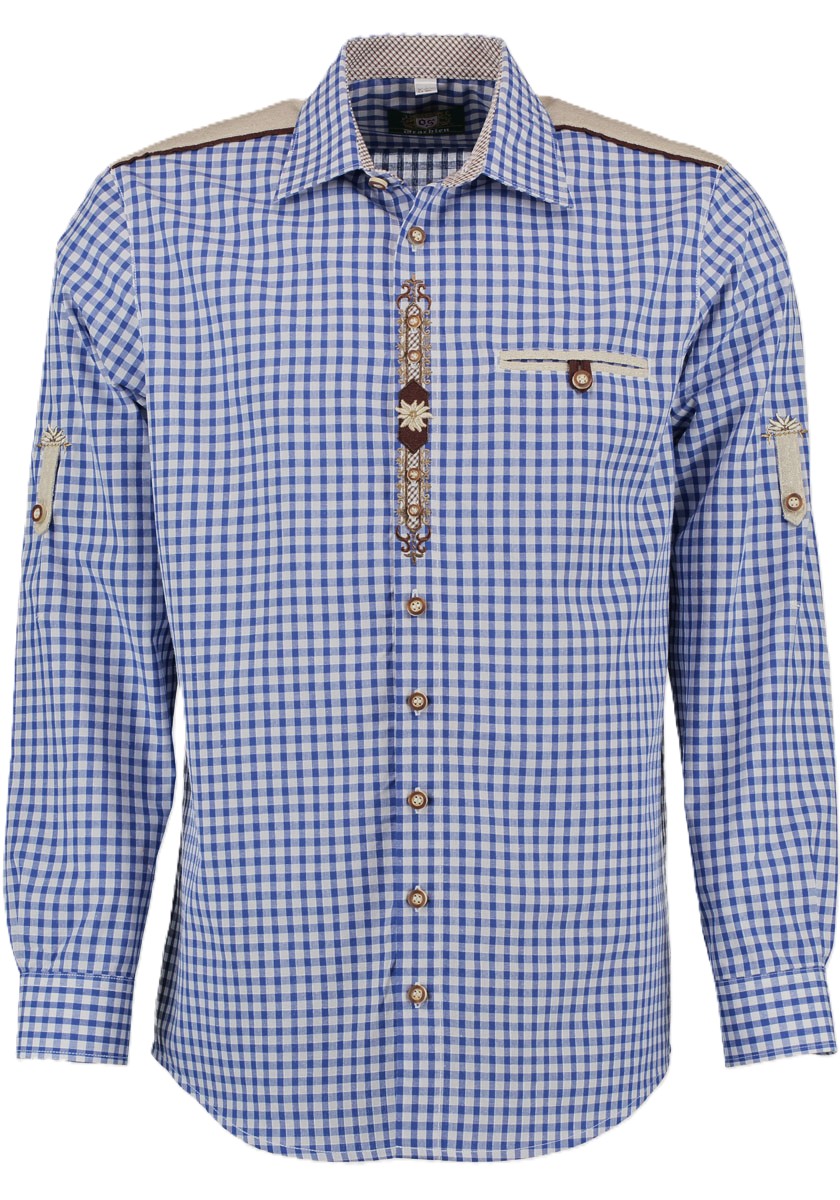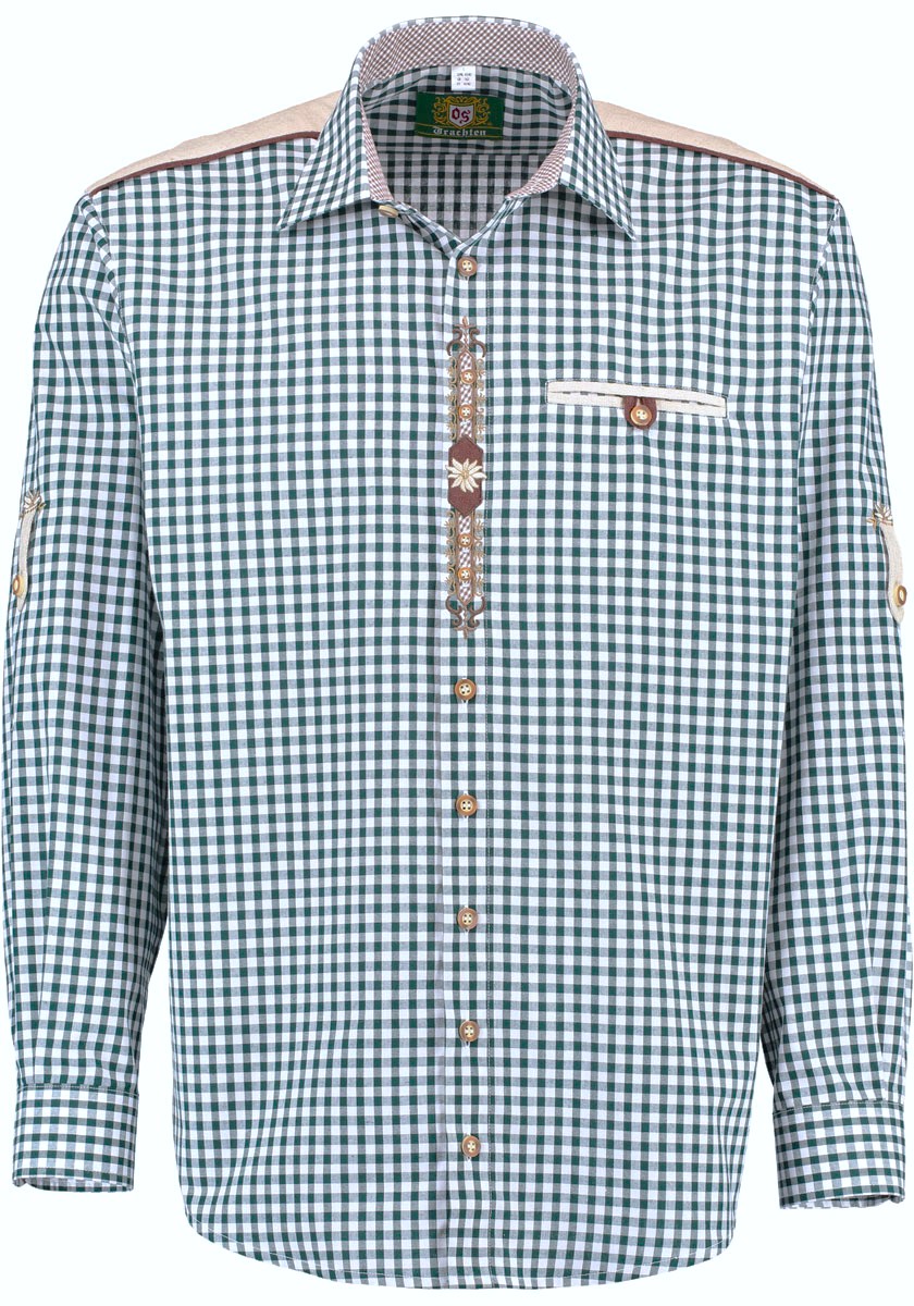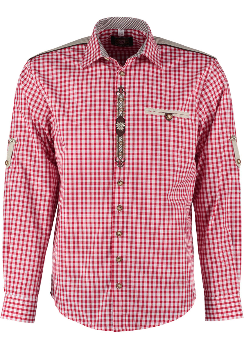 Men’s Checkered Trachten Shirt with Front Detail Blue, Red, Dark Green