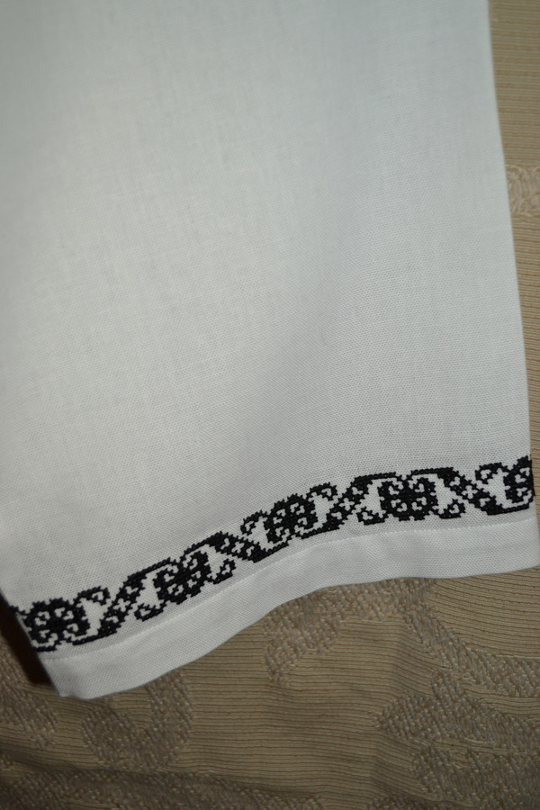 Traditional Sachsen trachten shirt in creamy-white cotton features black cross-stitch design embroidery details. Created with the look of the hand-stitched shirts made in every village of Siebenbuergen (Transylvania) by Oma .