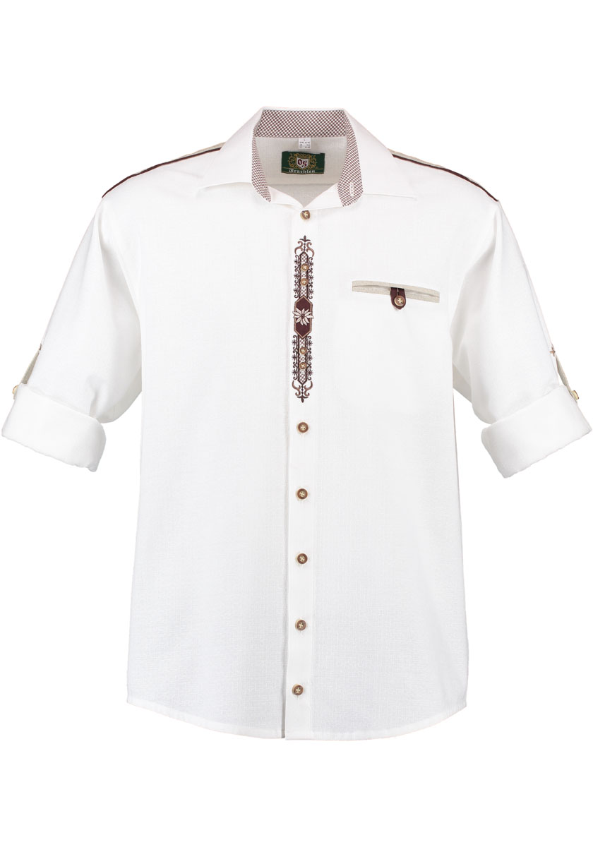 Lots of great detail in this shirt makes it perfect with lederhosen or jeans for your oktoberfest events.ย Long sleeves may be rolled up to just above the elbow and secured in place with decorative button tab.